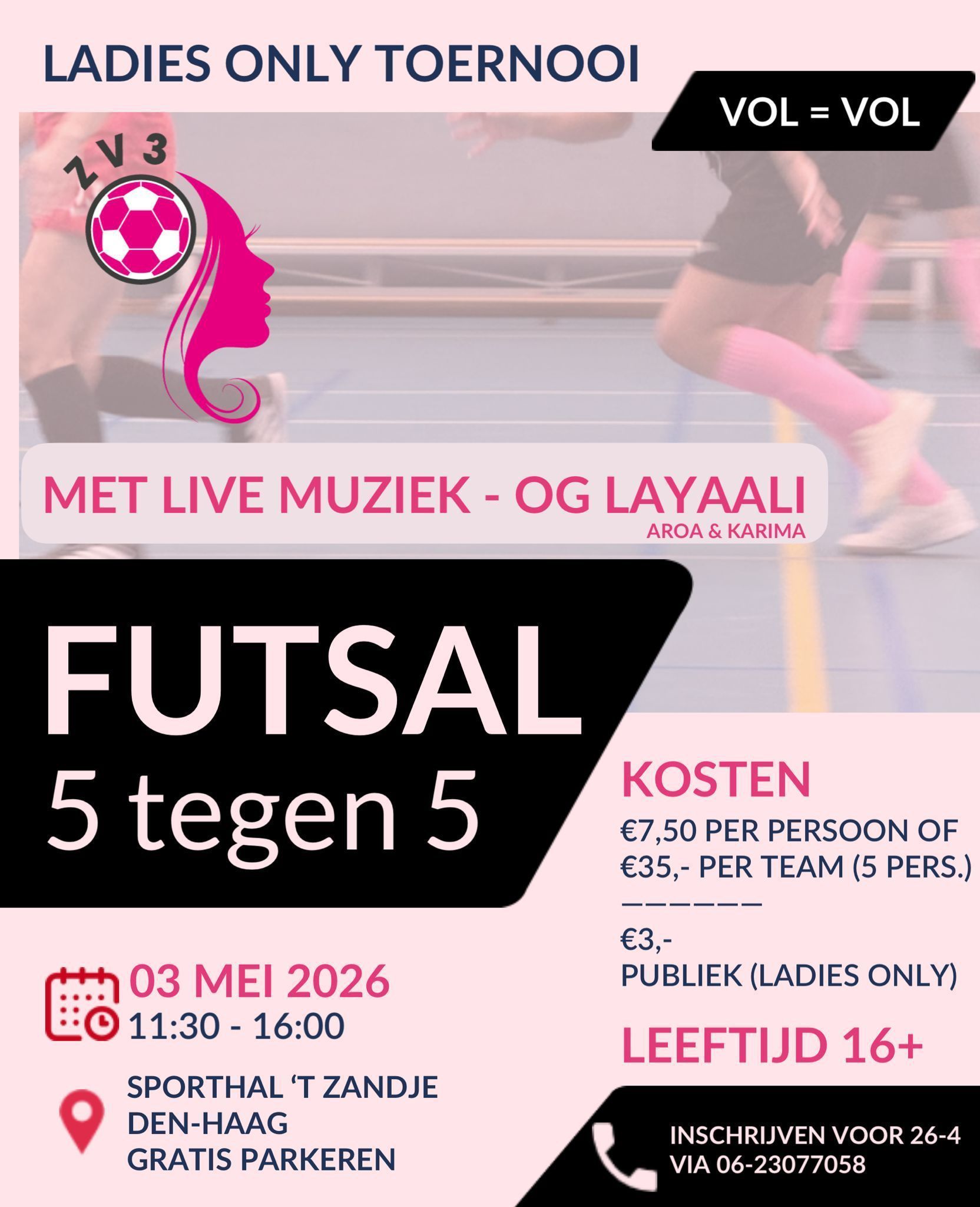 ZV3 organiseert met trots haar allereerste ladies-only futsaltoernooi! Doe jij ook mee?
